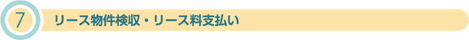 リース物件の据付け・納入完了後、当社所定の「借受証」を交付いただきます。この日(検収日)がリース開始日となります。また、第1回目リース料・前払いリース料をお支払いいただきます。