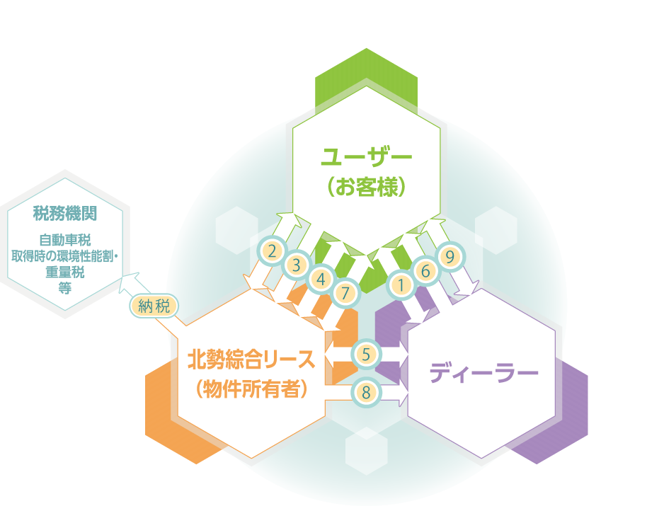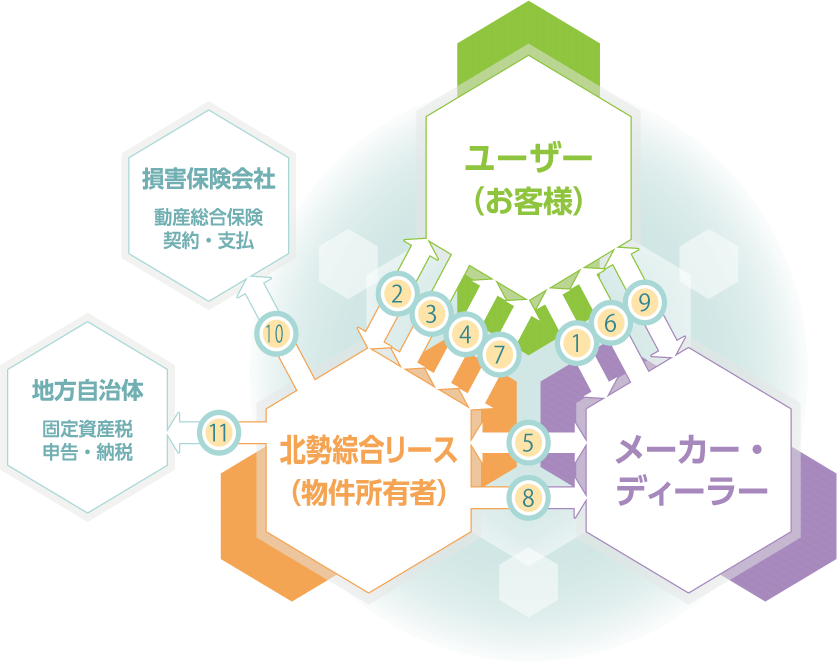 当社はリース契約に基づいてメーカー・ディーラーと物件売買契約を締結しリース物件を発注いたします。